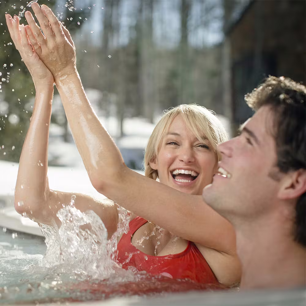 Multicolor SunGlow™ LED lighting brightens up the spa interior, waterfall, footwell and backlit grab bar. Paired with elegant exterior LED lighting.