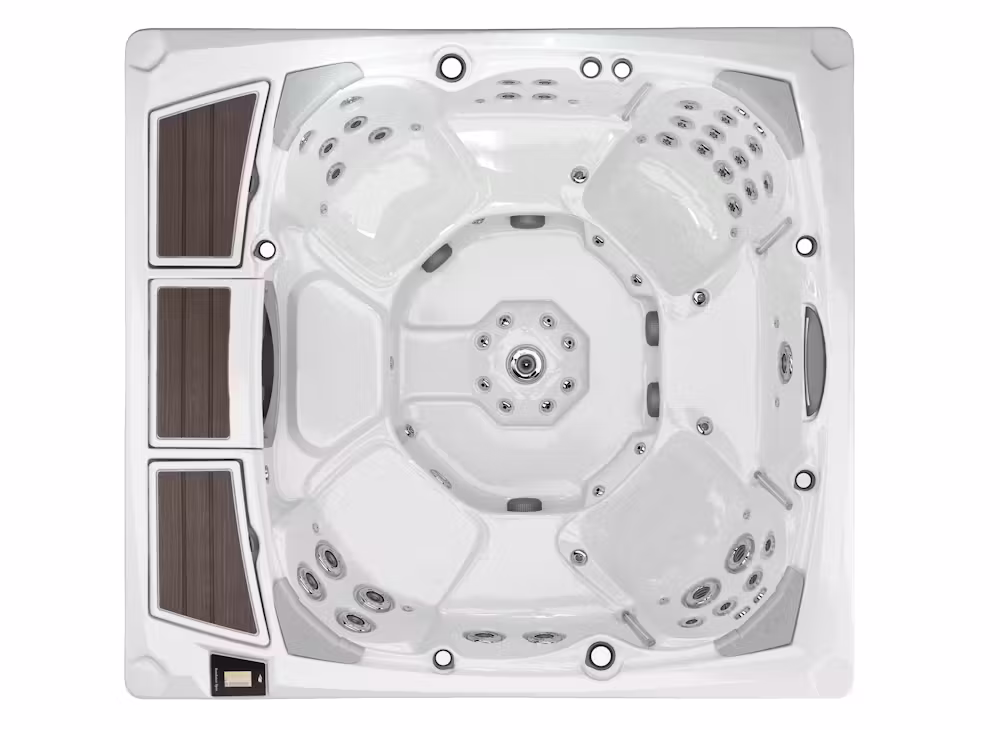 TThe crisp, rhythmic texture of the exterior cabinetry highlighted by corner illumination adds a whimsical combination of classic beauty and architectural form. And a low-profile flat top rail and beautiful lounge deck with illuminated SunCooler™ cold storage areas offer additional seating and convenience. Throughout the Kingston™ you can melt away stress and strain in seats that feature popular combinations of our Patented Fluidix® Jets. Wide seats inspired by some of our most popular models are highlighted by the even glow of LED lighting, adding beauty and safety. Greeting muscles with the widest back and leg coverage we’ve ever offered and soothing your muscles and senses with specialty Silent Air® injector jets and SunScents® Aromatherapy, total relaxation is only as far away as your backyard.