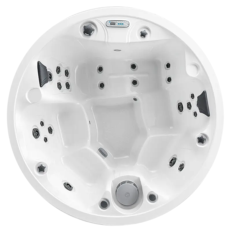 The Monaco accommodates a group of five. This throwback to the round hot tub days has a generous lounge with jets from neck to feet, two deep therapy seats with full-back therapy, and two bucket seats. With the convenient 120 volt plug-and-play system, you can locate it just about anywhere. Or, an optional 240V Performance Upgrade is available to enhance your therapy experience.