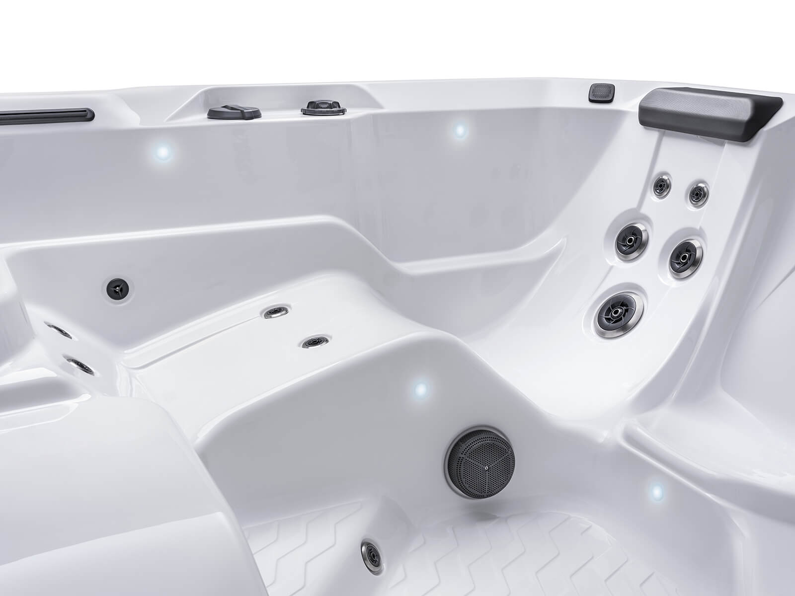 Designed to delight the senses, each Hot Spot Collection spa features eye-catching finishes, dramatic LED lighting, sleek metallic corners, and distinctive design details.